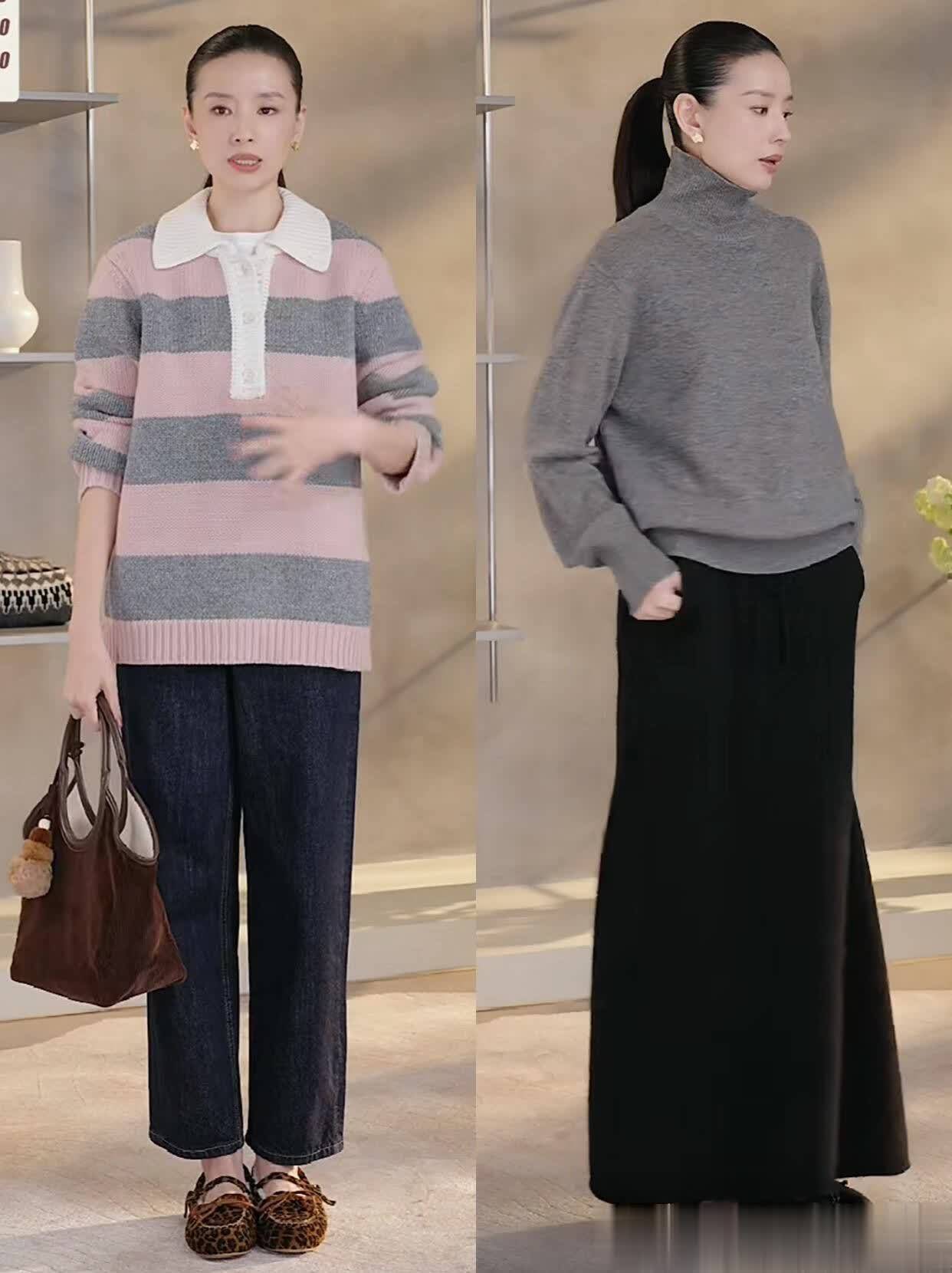 直播里她还分享了个小心机:穿西装时把裤脚裁到“盖住鞋跟1/3”的长度,显腿长又利落;搭毛衣时把下摆塞进半裙3厘米,悄悄拉高腰线。这些小技巧看着简单,试了才知道多管用——我上周学她把毛衣塞半裙里,同事都问“你是不是瘦了”,其实就是比例显出来了。