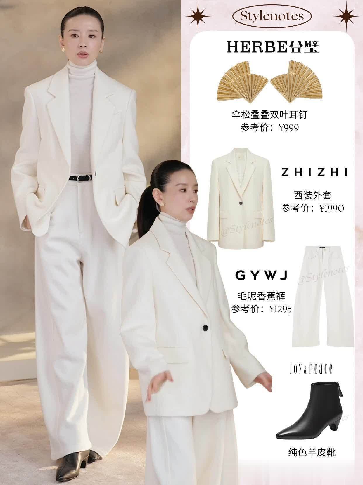先说那套All White西装套装,简直是“职场姐姐”的本命穿搭!白色西装是微廓形的,肩线挺括却不生硬,里面搭件同色系缎面吊带,领口露出一小截锁骨,干练里掺着点小温柔。裤子是高腰直筒款,裤脚轻轻盖过鞋面,配双米白色尖头高跟鞋,走在直播间里步频都带着气场,弹幕里全是“这套我要焊在身上”。最妙的是她没搭复杂配饰,就戴了只细表带手表,反而把“简约即高级”的道理讲透了,像咱们平时上班穿,换双平底乐福鞋也完全OK,正式又不呆板。
